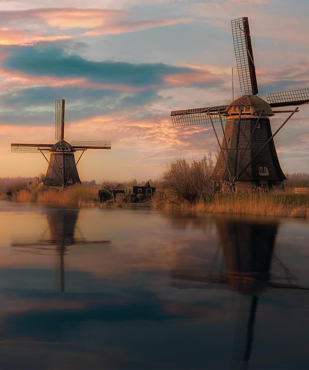 Wanneer u Kinderdijk bezoekt, stapt u midden in de Nederlandse geschiedenis. Alles ligt hier onder zeeniveau, dus om onze voeten droog te houden, werken we al eeuwenlang samen met de wind en het water.